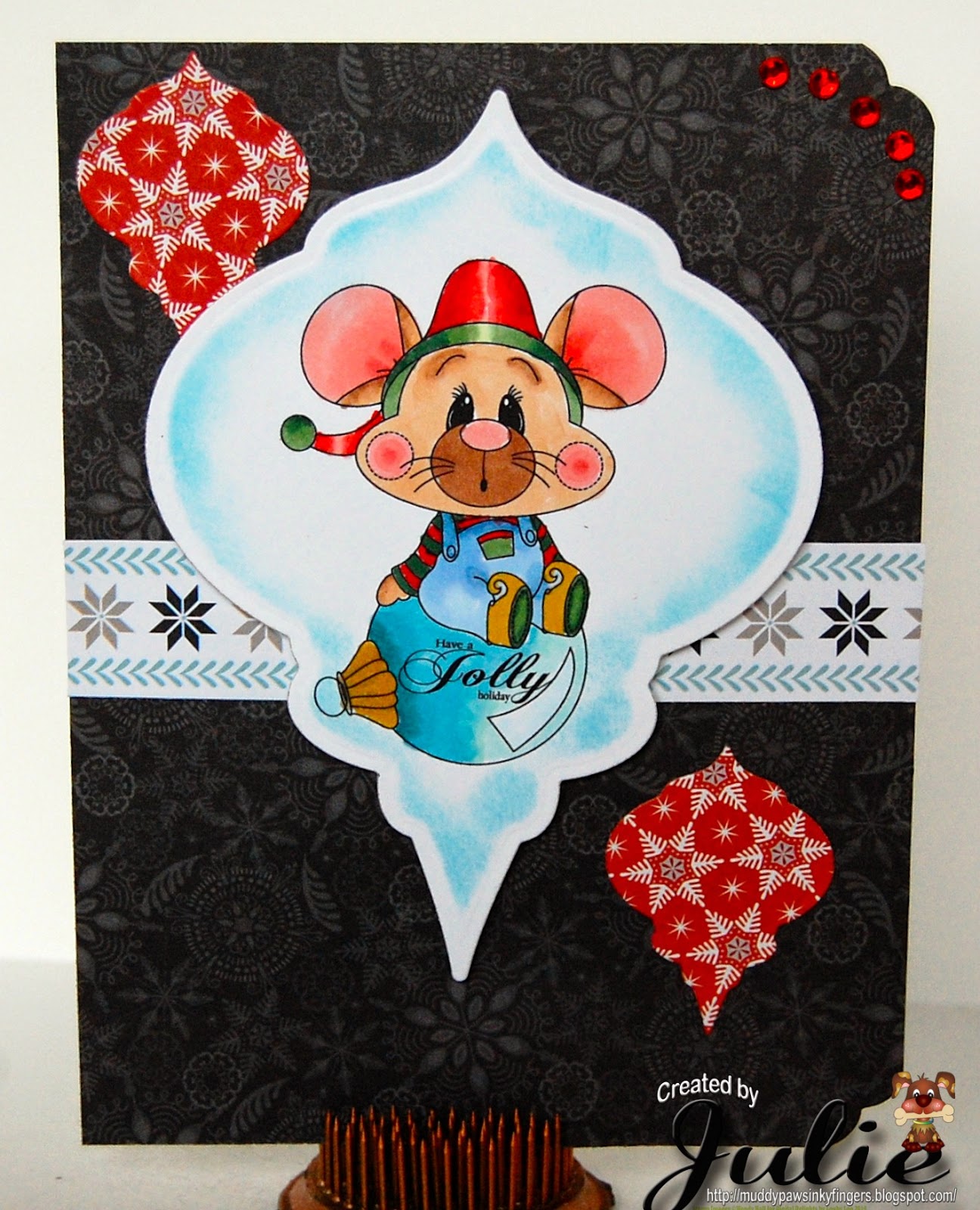Love those fabulous dies, Julie and gorgeous papers! Ornament Mouse is soooo cute and you’ve coloured him beautifully! Great idea to put the sentiment on the ornament! xx