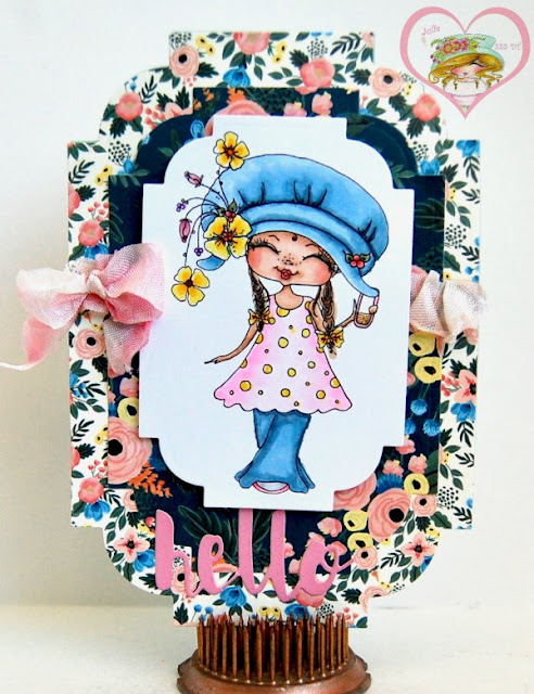 I colored Fancy Pants Cell Phone with Copic markers and used a die cut for the "hello". Isn't she adorable? I had so much fun with this!
