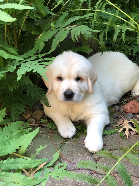 Here he is today, after exploring the yard. He found a cool place to hang out, in the ferns.