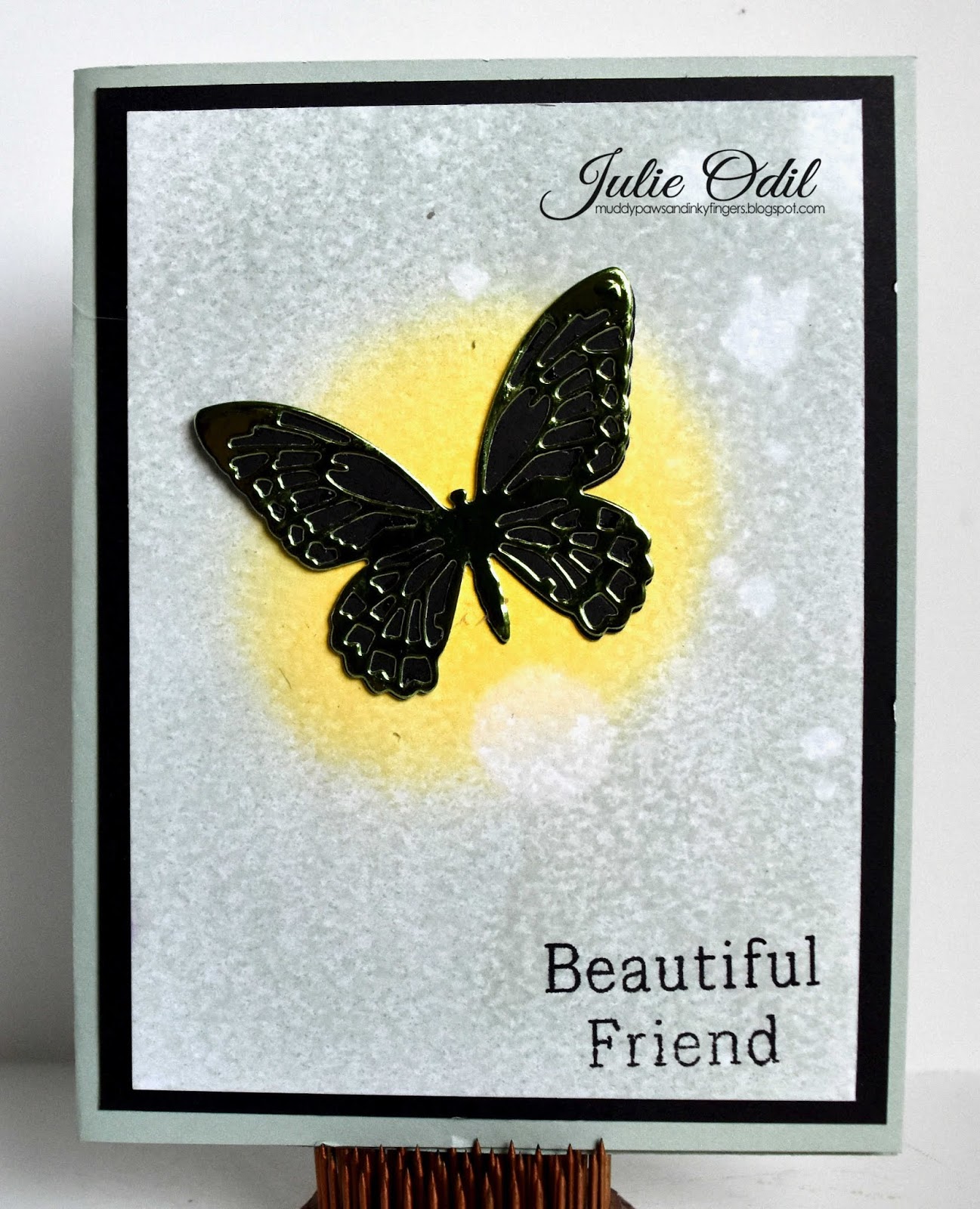 Here's a different color scheme, but the same butterfly used on a sympathy card: